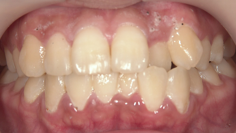 前歯の歯並びを整えたいとのご希望で、カウンセリングに来院されました。歯が重なり、やや前に出ている状態でしたので特に口を閉じた時に、上唇が出てしまうことがとても気になっているとお悩みでした。このような歯並びを整えるケースの場合、かみ合わせを細かく調整しながらのセラミック治療をおすすめしています。