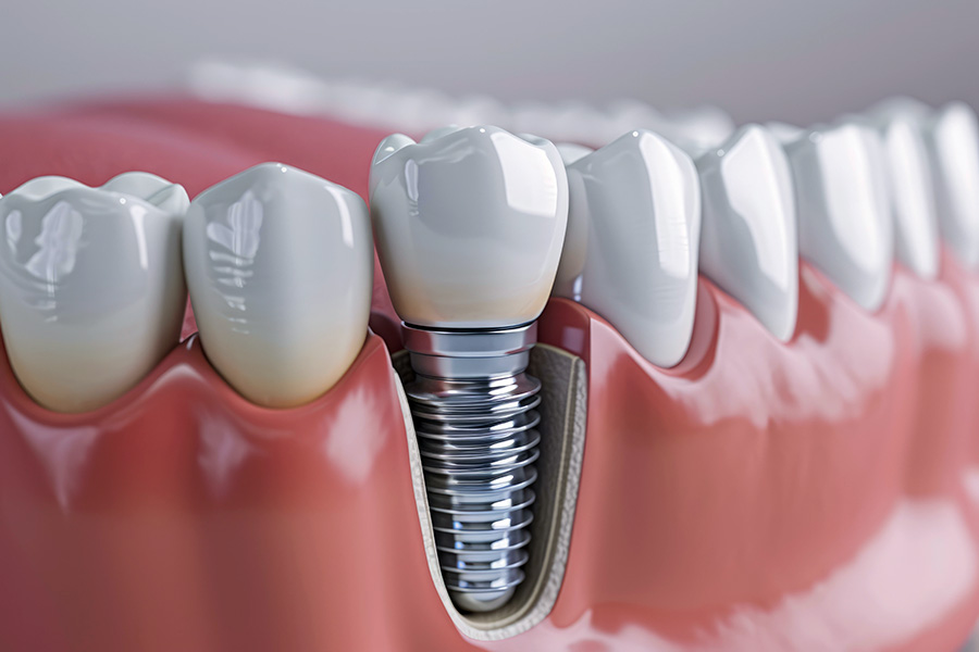 インプラント治療は、歯を失った箇所にインプラント体と呼ばれるネジ状の金属を埋め込みその上に被せ物を被せる治療法です。