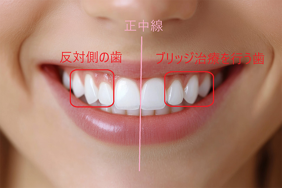 ブリッジ治療では、治療を行う反対側の天然歯との見た目のバランスが重要です。