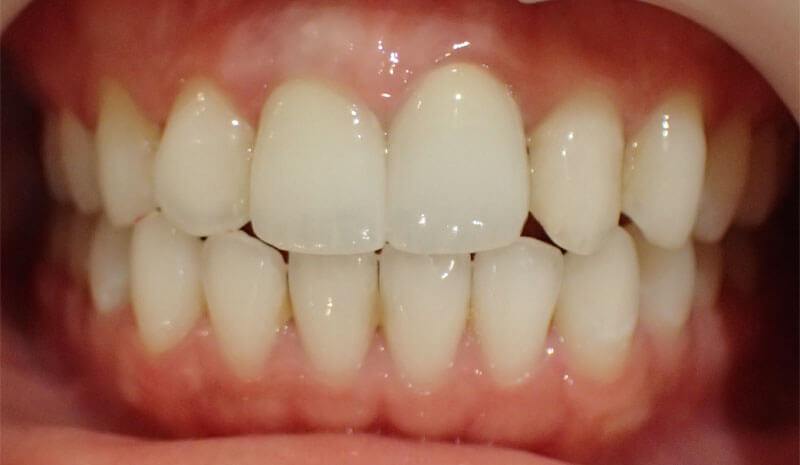 最後にご紹介するのは、今の歯の色に合わせたセラミックをセットする方法です。ホワイトニングは行わず、セラミック矯正治療のみを選択するケースです。