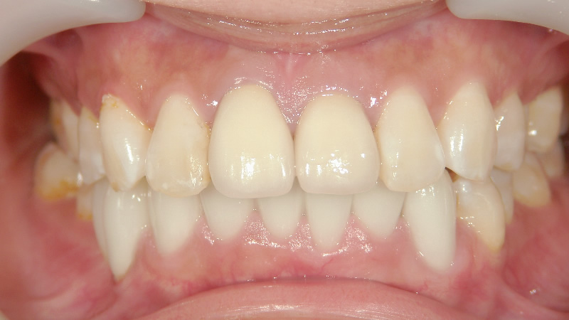 顔の縦の中心線を正中(せいちゅう)と言います。この正中のラインと、歯軸(しじく:歯の縦の中心線)を平行にそろえることで、よりお顔になじんだ歯並びに整えることが出来ます。正中のラインも、個人により微妙に異なりますので、お口を開けた時にもっとも美しく、自然に見える状態にこだわっています。